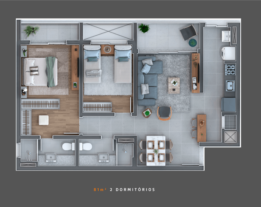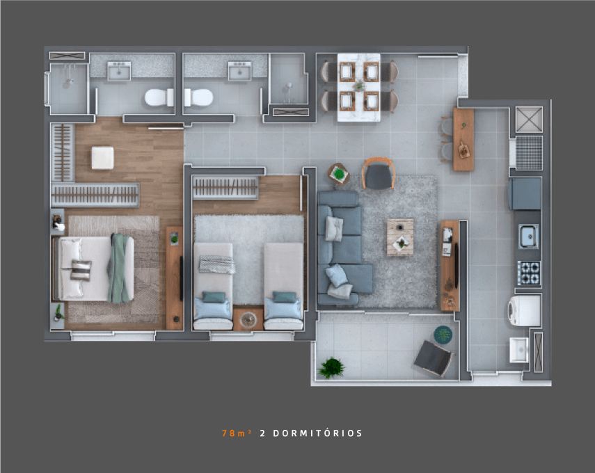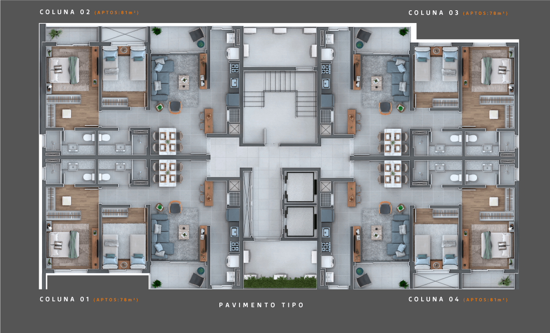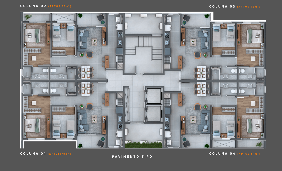 APARTAMENTO 2 DORMITÓRIOS 78 E 81m²